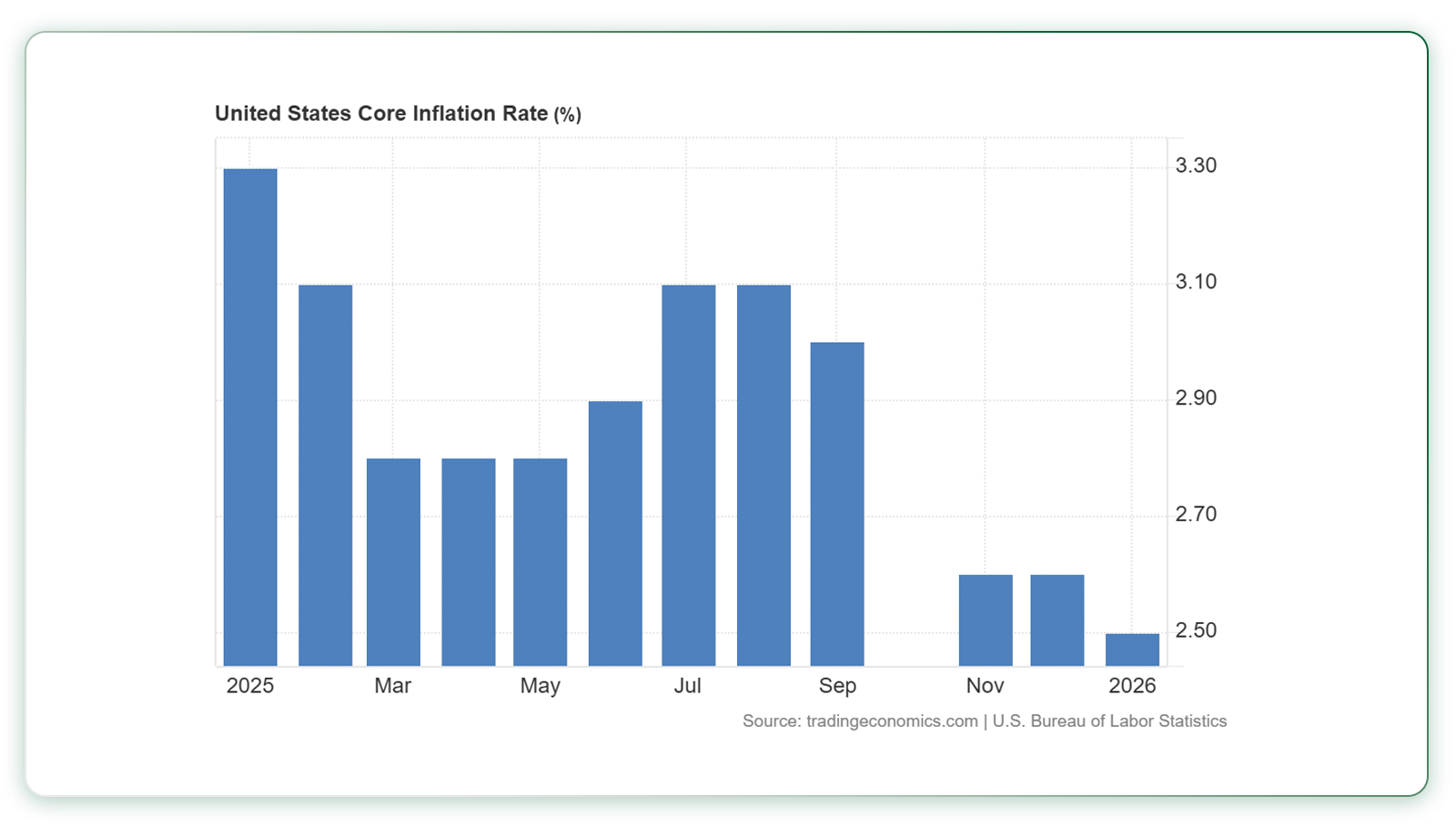 بر همین اساس، تورم هسته (Core) در آمریکا که شامل تمامی کالاها و خدمات به جز مواد غذایی و انرژی میشود، به ۲/۵ درصد کاهش پیدا کرده و از ماه سپتامبر ۲۰۲۵ شاهد کاهش مداوم تورم هسته در آمریکا هستیم.