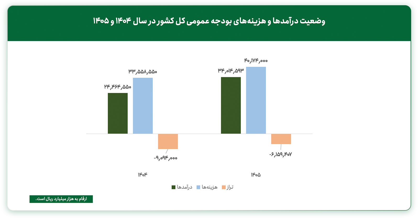 سازمان برنامه و بودجه برای سال آینده حدود ۳۴۰۰ همت درآمد و ۴۰۰۰ همت هزینه پیش‌بینی کرده که بر این اساس، کسری بودجه‌ای در حدود ۶۱۵ همت برآورد می‌شود؛ رقمی که نسبت به بودجه سال جاری کاهش قابل‌توجهی را نشان می‌دهد. هرچند کاهش کسری بودجه می‌تواند به تقویت انضباط مالی دولت و مهار فشارهای تورمی کمک کند، اما با نگاهی به ترکیب و منابع درآمدی بودجه، نگرانی‌ها درباره تعمیق رکود تورمی در اقتصاد افزایش می‌یابد.