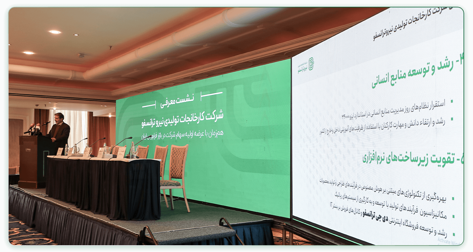 نشست معرفی شرکت کارخانجات تولیدی نیروترانسفو همزمان با عرضه اولیه سهام این شرکت در بازار فرابورس ایران، با حضور مدیران بازار سرمایه، فعالان صنعت برق و اصحاب رسانه در هتل اسپیناس پالاس تهران برگزار شد. در عرضه اولیه امروز سهشنبه ۲۱ بهمنماه، ۱۲ درصد از سهام این شرکت به قیمت هر سهم ۸,۱۹۴ ریال به عموم سرمایهگذاران واگذار شد. لازم به ذکر است، کارگزاری فارابی نقش مشاور پذیرش و عرضه سهام این شرکت را برعهده داشت.